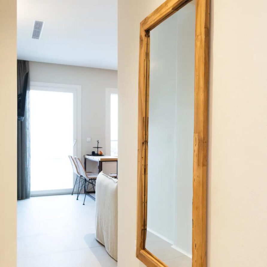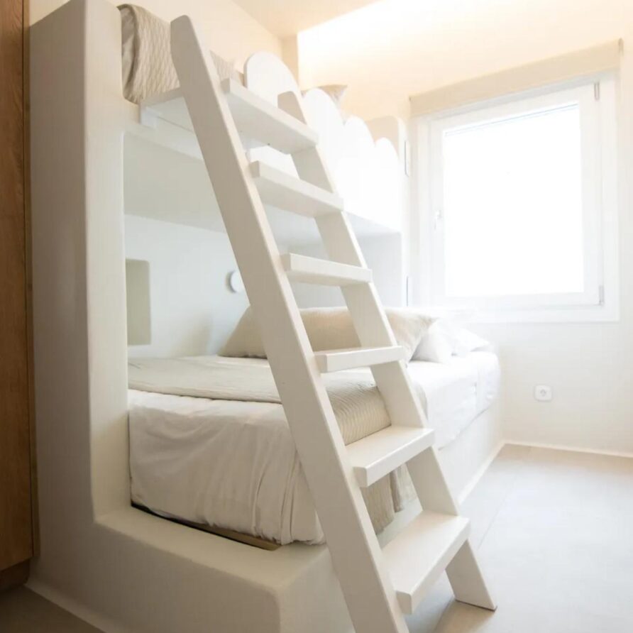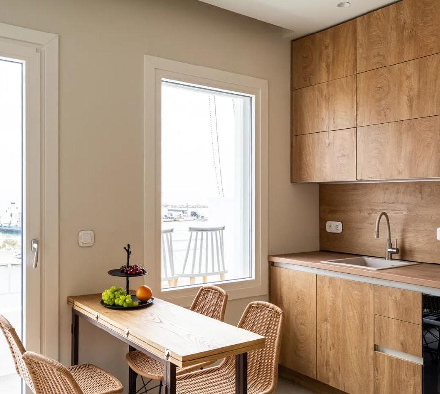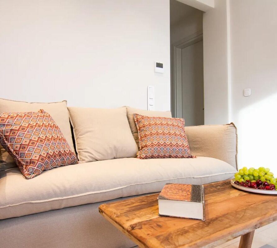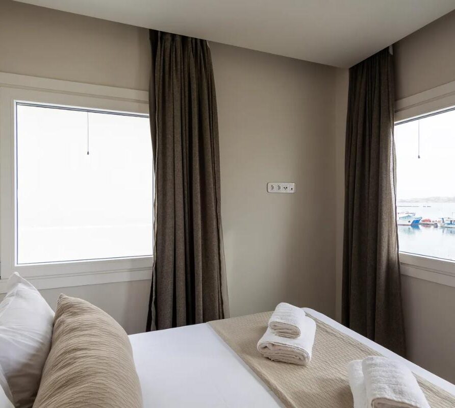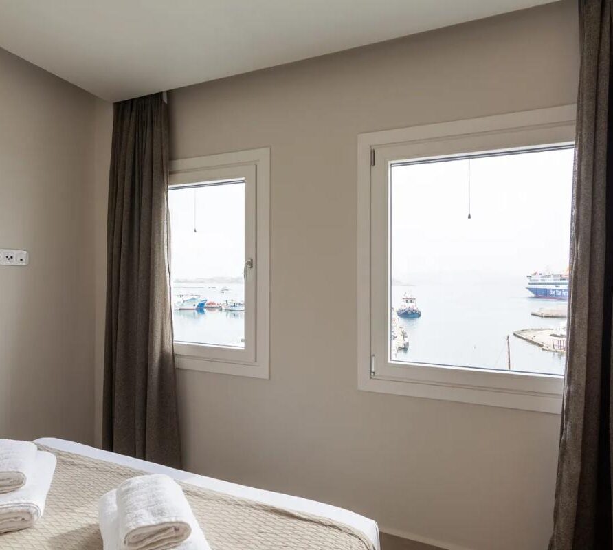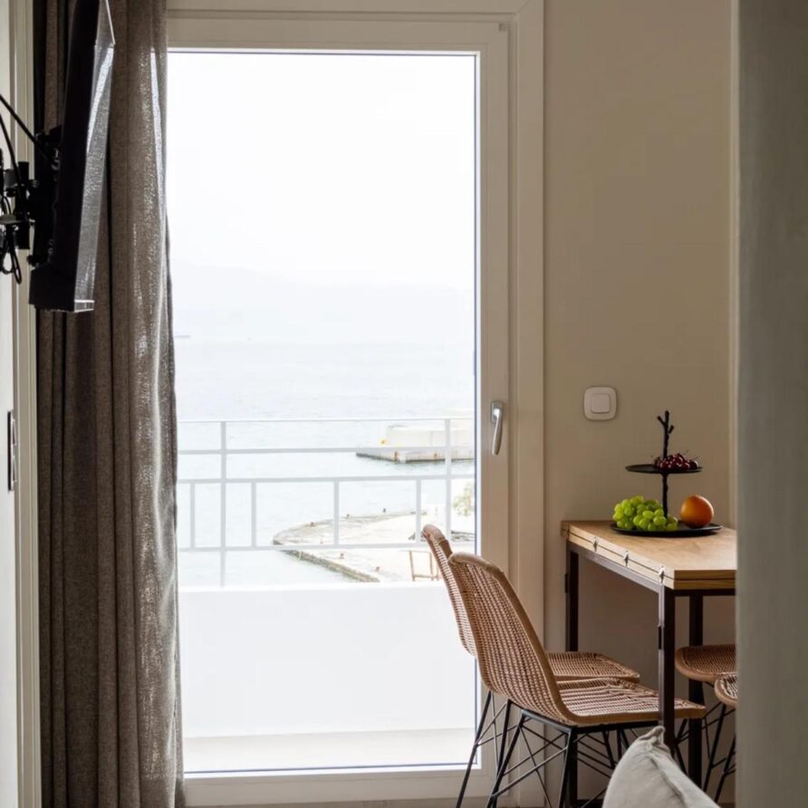 Selene Sea View Apartment is a unique, stylish and welcoming apartment located in the heart of Naxos Town, next to the Port, with a luminous and airy character. The exclusive, stunning panoramic view of the Aegean Sea and the idyllic sunset offers moments of relaxation and tranquility to our guests. The apartment’s location, in front of the main square of the island and right next to the market of Naxos makes it a great spot with many options to offer. Elegant with modern architectural design and decoration, fully equipped, it can accommodate up to 5 people. It has a kitchen, a living room, two bedrooms and a bathroom.